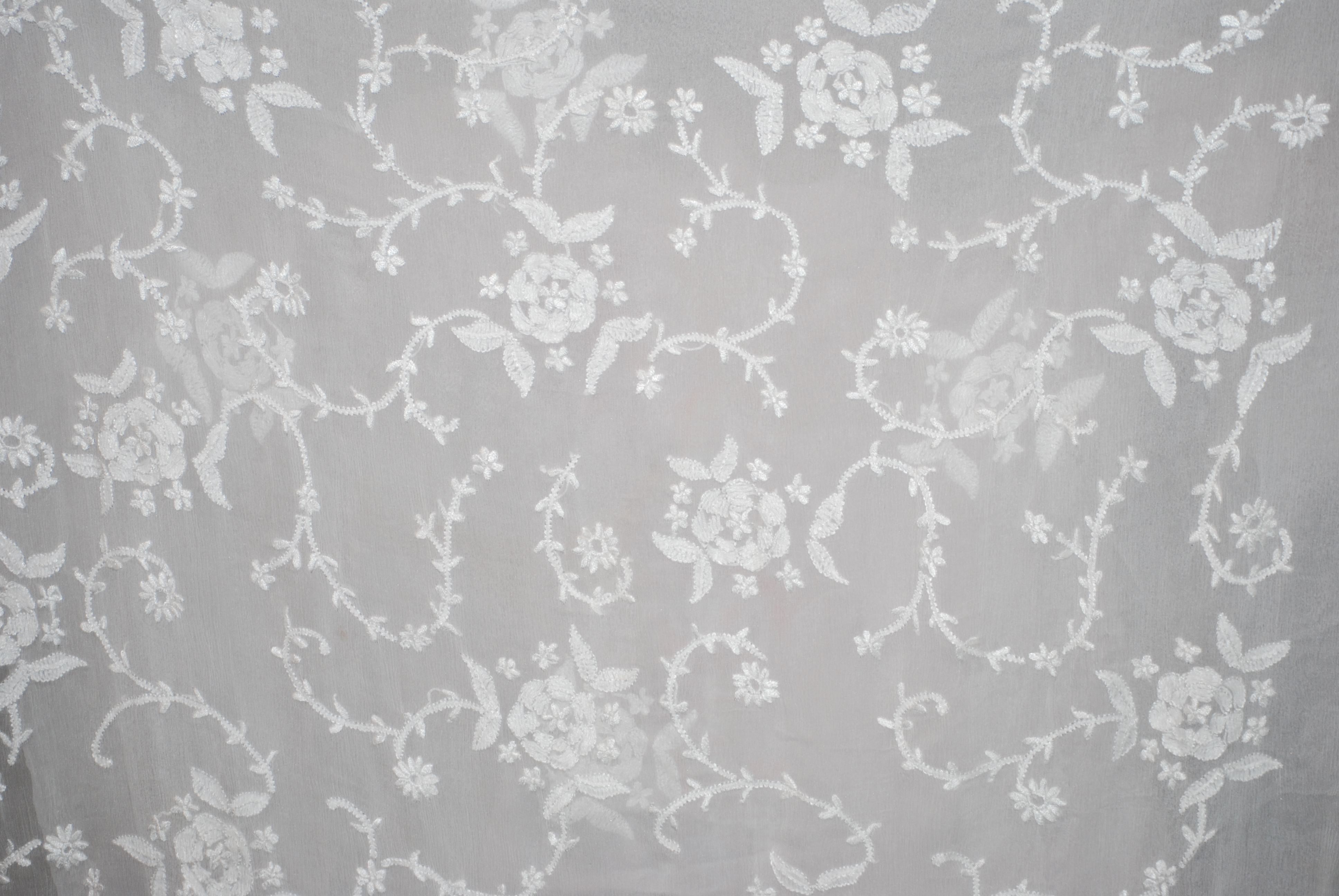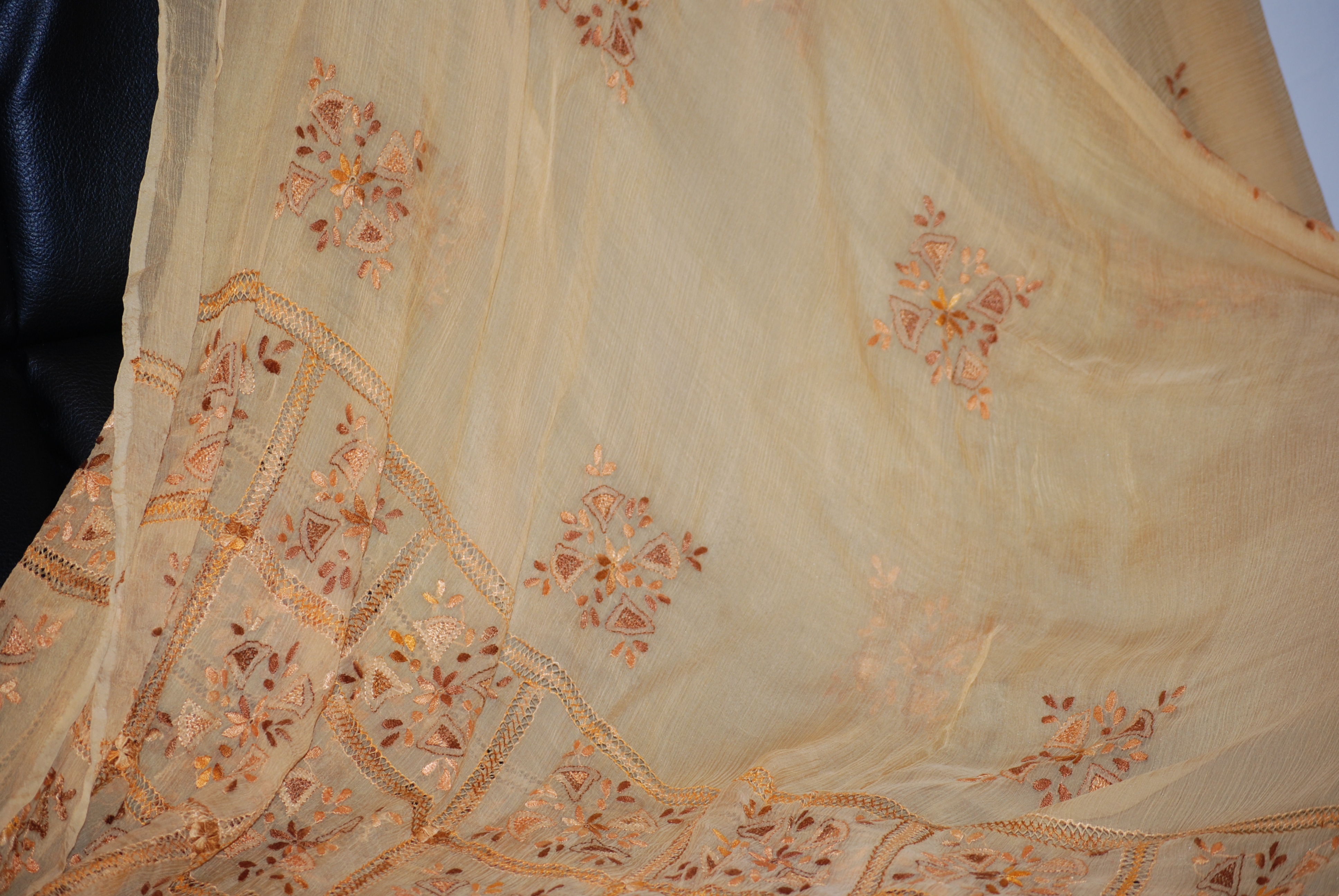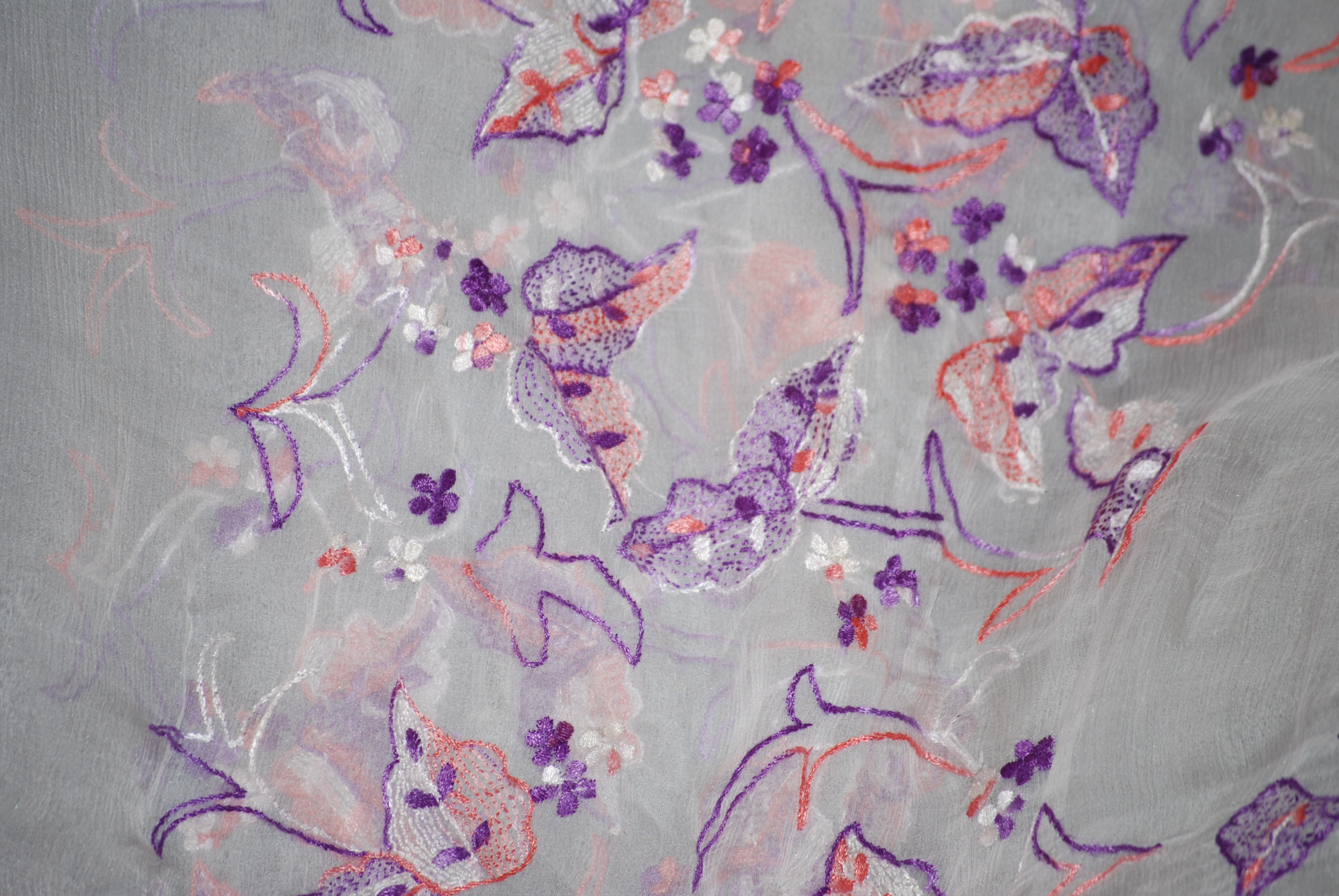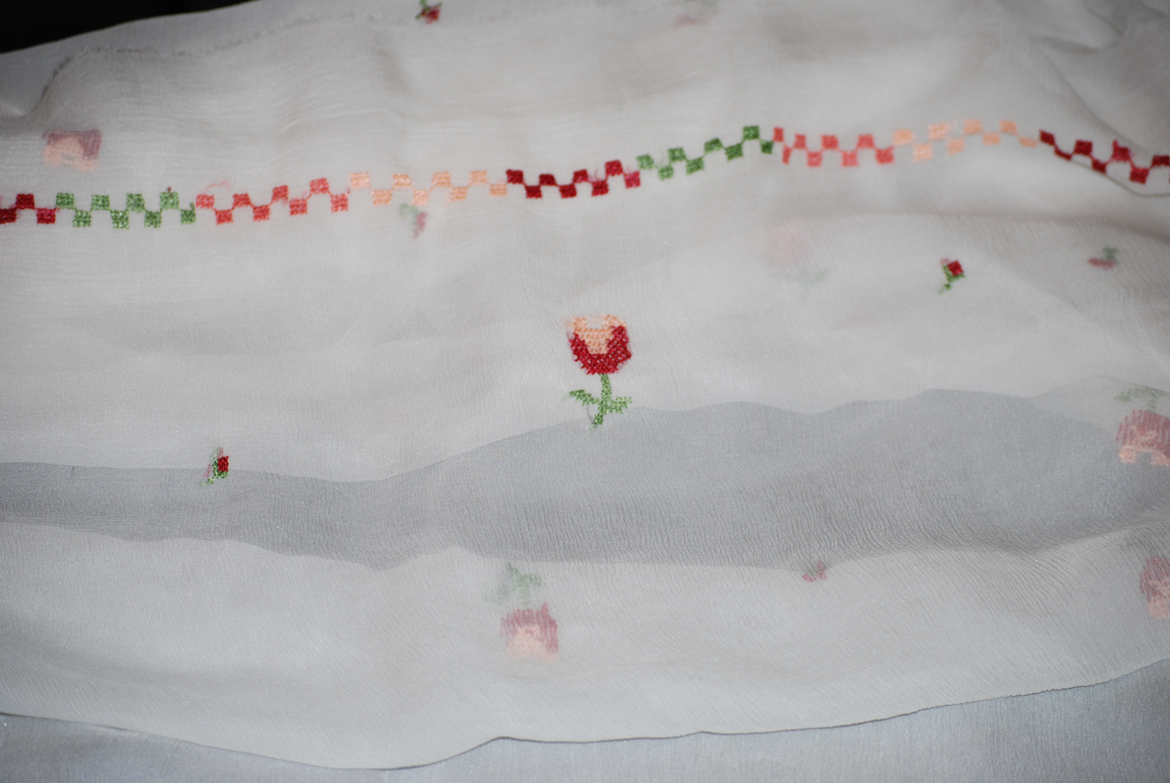 (White chiffon Kashimi ‘taanka’ worked with maroon,green and pink thread)