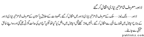 Munir Niazi dies in Lahore