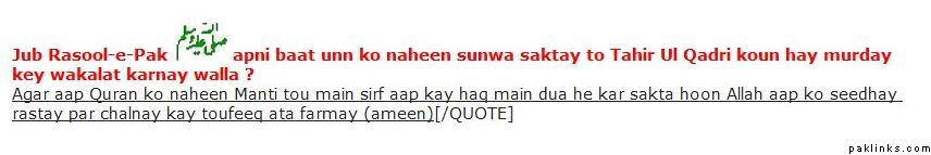 Jub Rasool-e-Pakapni baat unn ko naheen sunwa saktay to Tahir Ul Qadri koun hay murday key wakalat karnay walla ? **