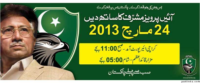 former president Pervez Musharraf when he returns home to Pakistan. It said its