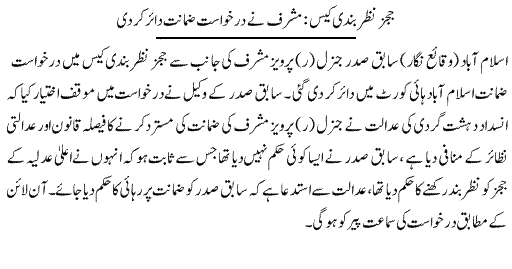 Gen Musharraf returned to the country on March 23 to take part in active politics and contest the May 11 elections, but his nomination papers were rejected from the four constituencies selected by him. He is also facing two cases – detention of judges in 2007 and assassination of former prime minister Benazir Bhutto – and has been detained in his Chak Shahzad farmhouse which has been declared a sub-jail.