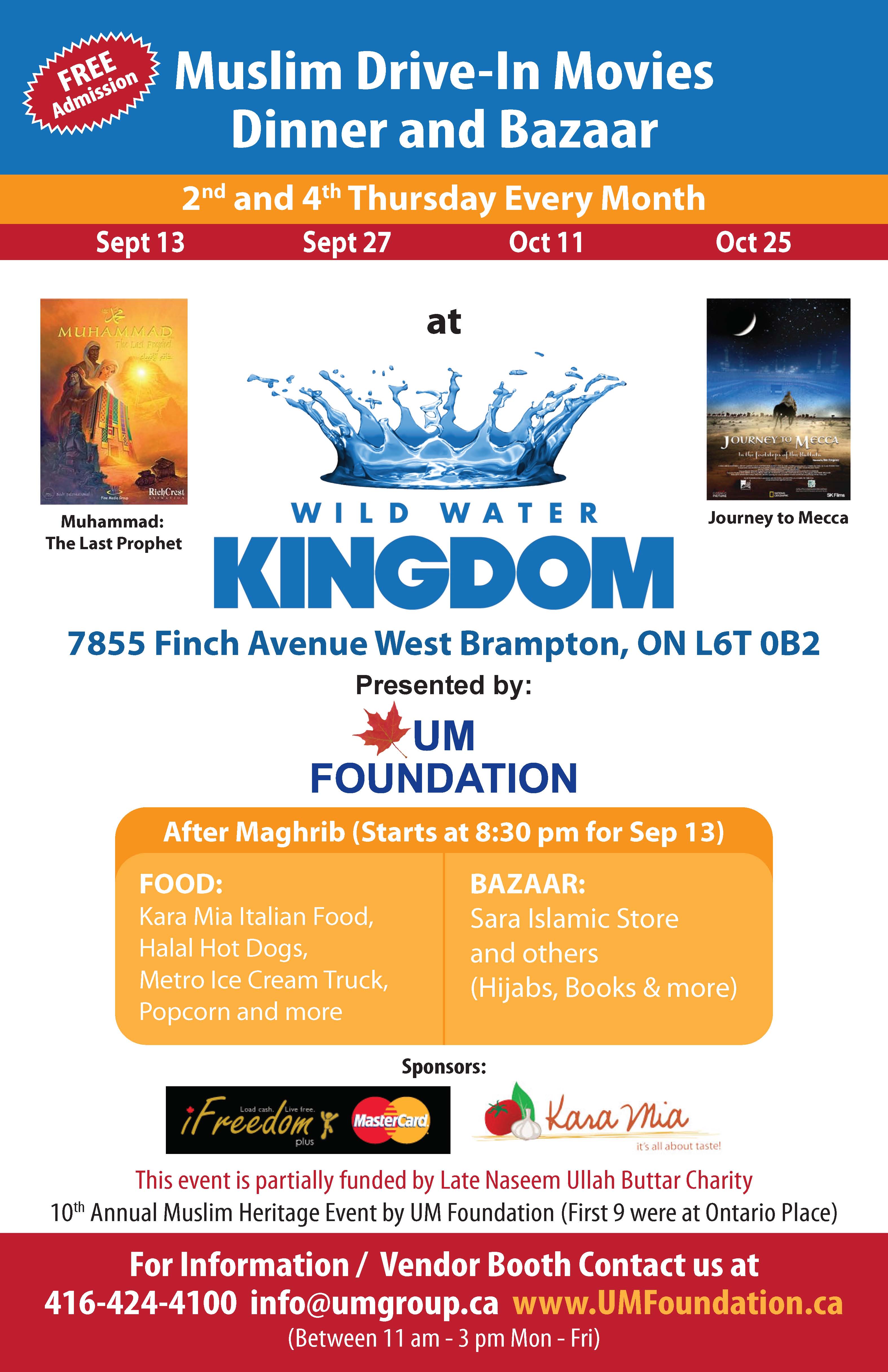Muslim Drive-in movies, dinner and Baazar at Wild Water Kingdom as Canadian Government and Toronto City Govt celebrate Islamic History Month (Oct 2012) to recognize the important contribution of Canadian Muslims to Canadian society.
