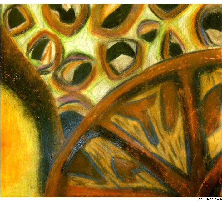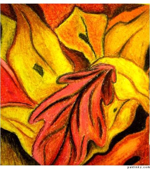 *Zobia *- its a mixture of everything mainly watercolours, oil pastels, pencil crayon, modrock and arcylics . there's no chalkpastels and the one ur thinking of fabric thats batik on paper.