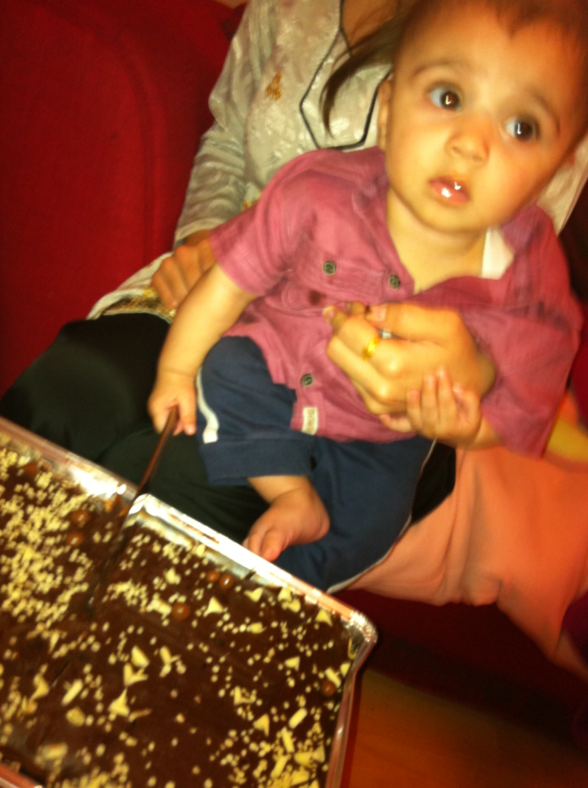 i was gna eat choco cake n he snatched knife frm me n tried to cut by himself