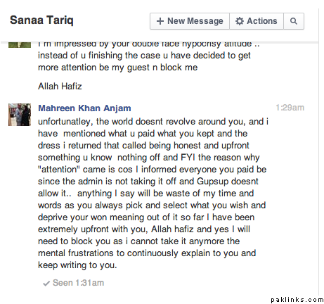 I finally got AED 7621.00 from 10550.00 I paid to husne Afza by Sanaa Tariq, I have given her the dress back which she is reselling to some one, I had given my word to delete this post once I got the money even though it wasnt not full refund and the dress was too taken back.