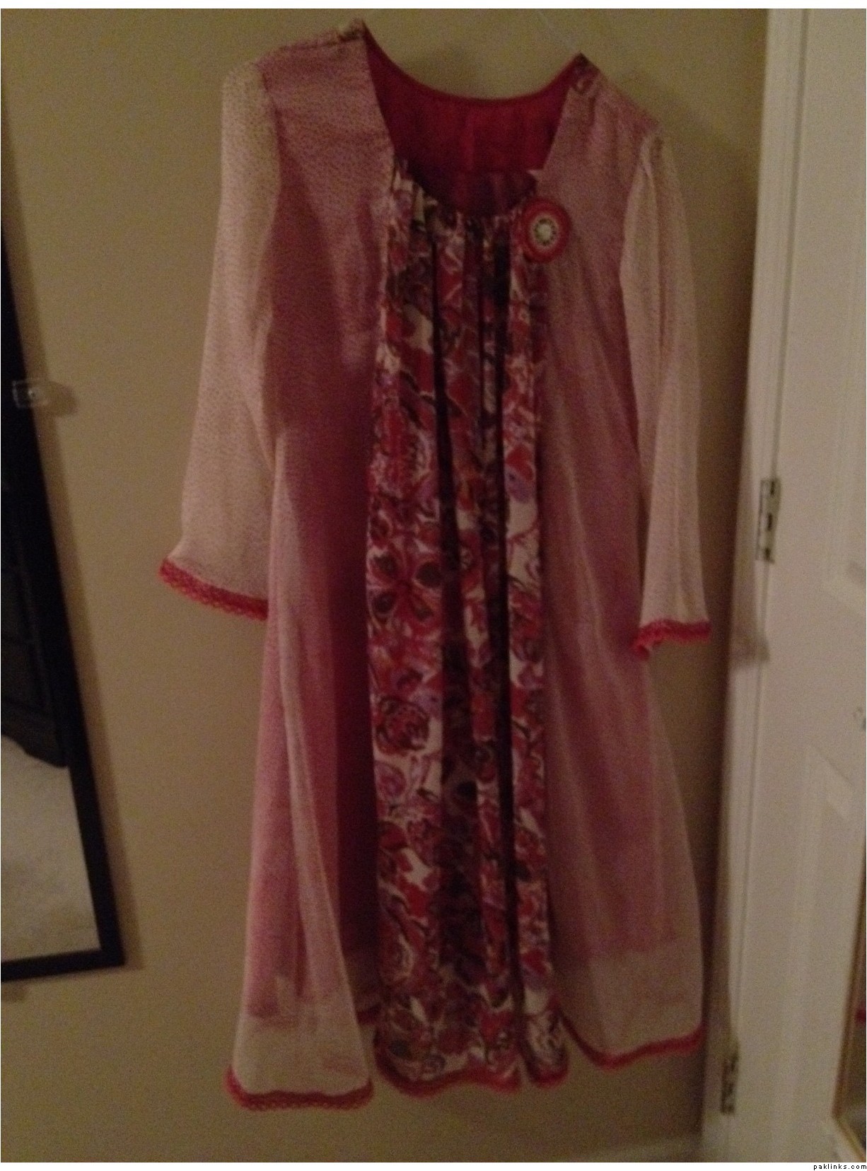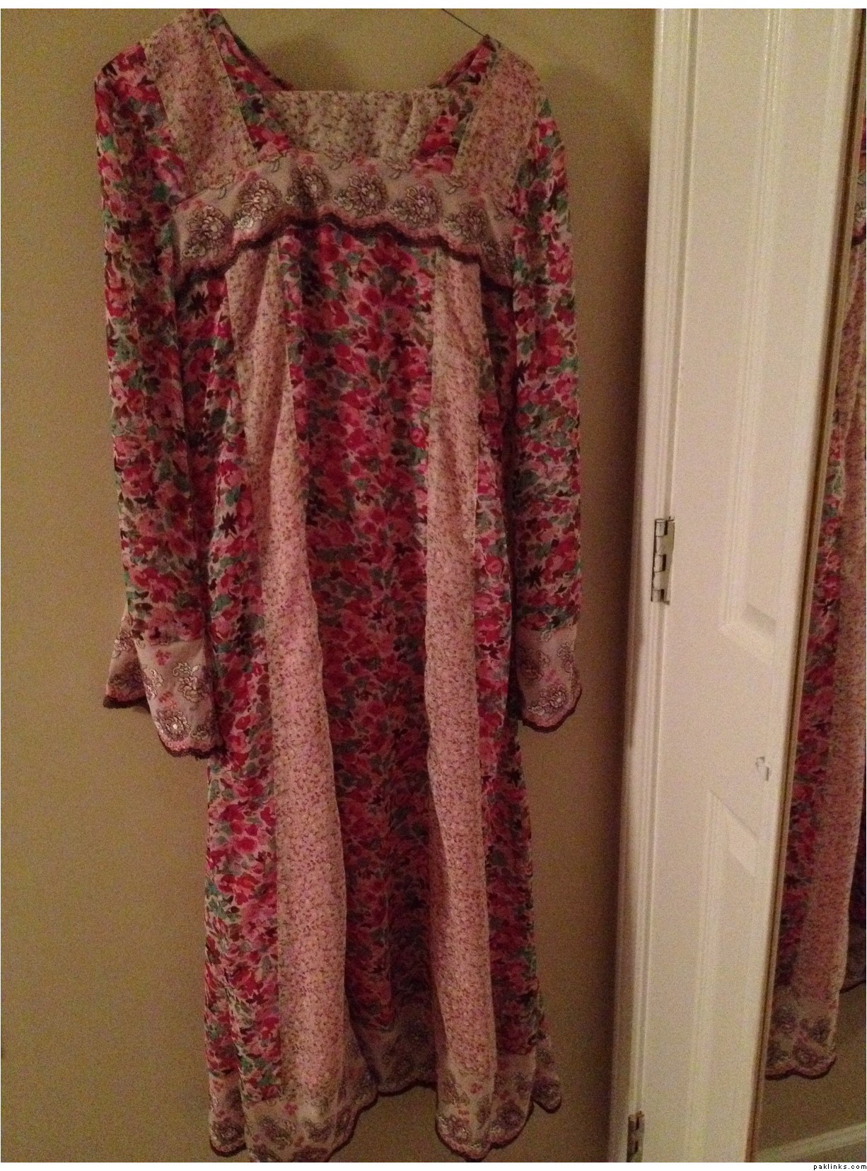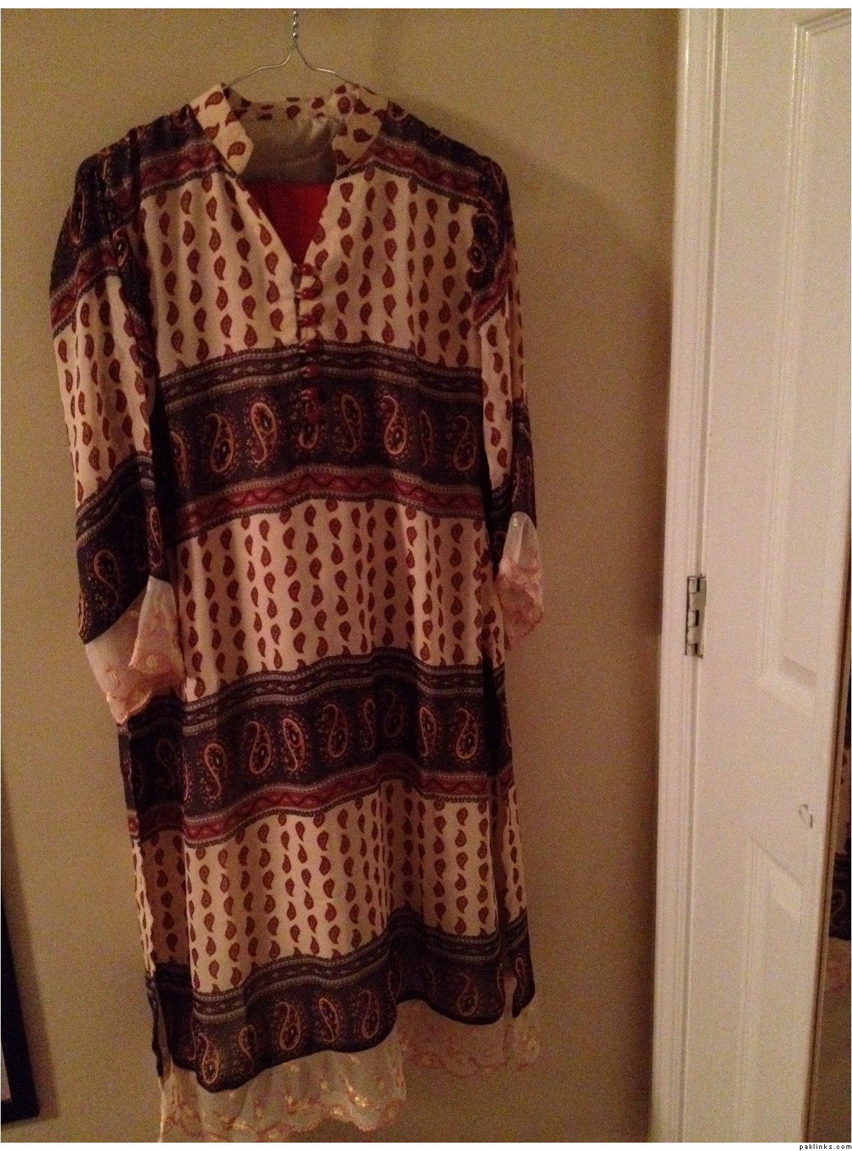so I wanted some really casual daily wear georgette clothes to wear at home which are long lasting and washer and dryer safe. At the same time I was looking for someone who would accept paypal, as I wanted some security before making first time purchases and ofcourse, most importantly not charge me crazy amount. So finally after a good 3-4 month search, I found and talked to Fouzia, owner of Pakkhi fashion. She was very quick in responding to all my emails and calls, she immediately knew what I wanted and sent me pictures of the georgette fabrics to choose from. On jan 23rd I sent her my details with the money which I could easily pay through paypal and she promised me that my clothes will be done and shipped to me in 4 weeks. Like the rest, I was promised “4 weeks” for my clothes to be delivered and this was my first experience ever to get my clothes on time, i.e. exactly 4 weeks! I paid Fouzia on jan 23 and my clothes were delivered exactly on feb 23. Im very happy with my clothes and they were exactly like the way I wanted them to be, I asked for light laces on them which are washer and dryer safe and that’s exactly what I got. And maybe the only little problem I found was that the shirt is half inch tighter, good for me, atleast it can motivate me to lose some weight finally, lol