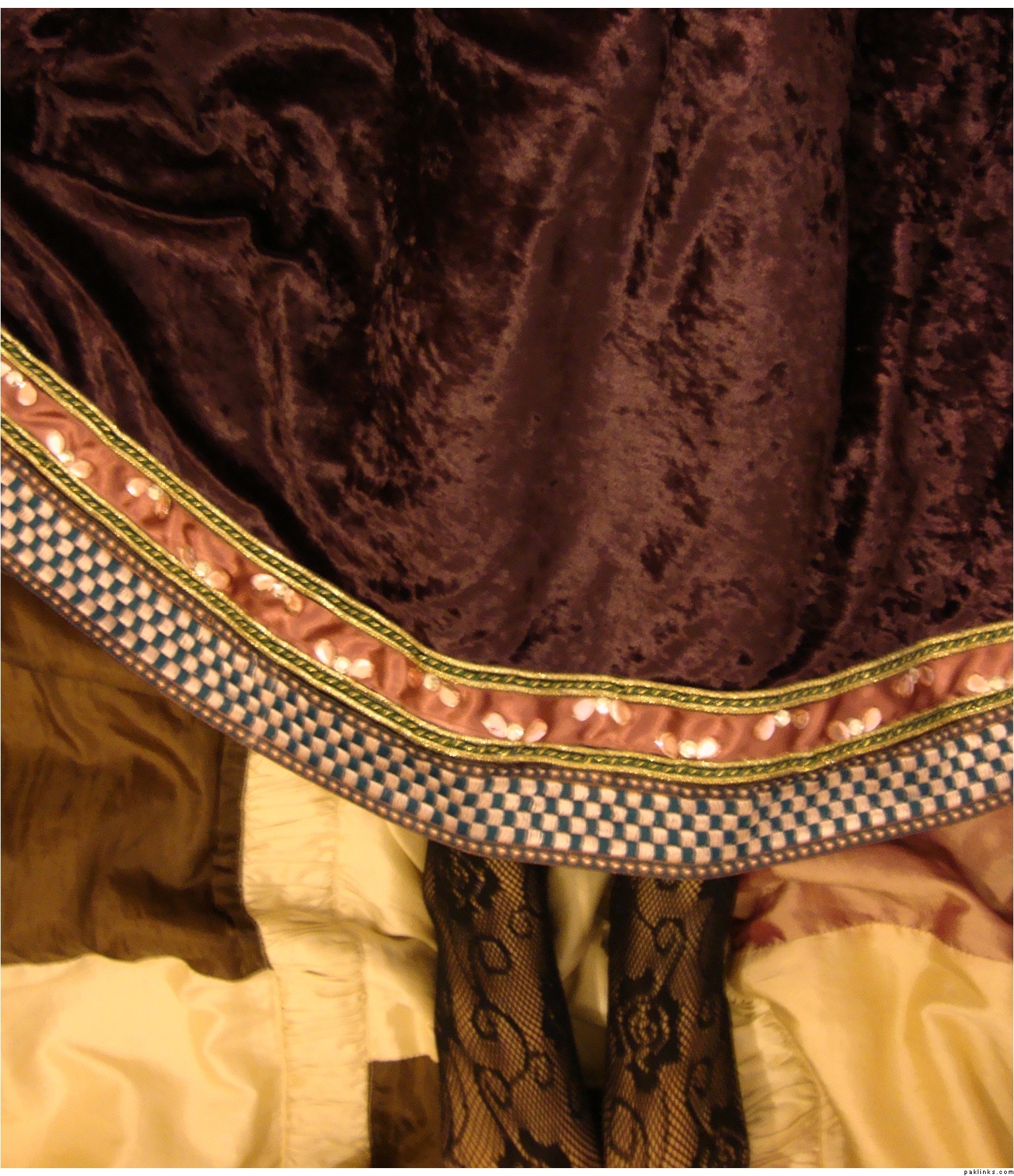 So I used very cheap fabric (deep purple/aubergine velour from Abakhan which is 1.30 a metre (x4) and then there was a 25% discount, buttons around 10p each, ribbons about £4.00 beads&acrylic gems around £3.00)