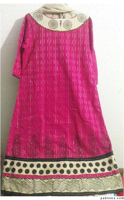 size medium stiched ready to wear khadder suit with pants same colour shiet having block printing rs.3500
