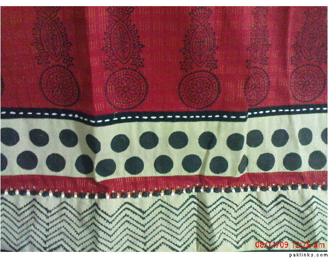 this cant be made again its silkgrip with tie and die chiffon duppta with karundi pants with matching lace on bottom with paties…rs.5000