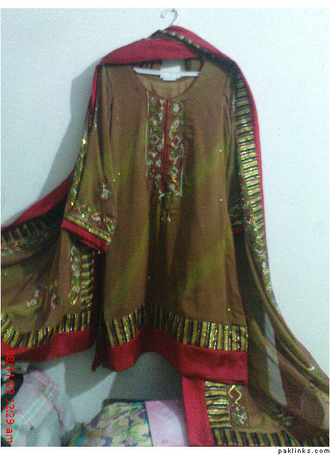 grip georget with shamose and banarsi patties ,with embrioded duppta…and a printed shalwar.