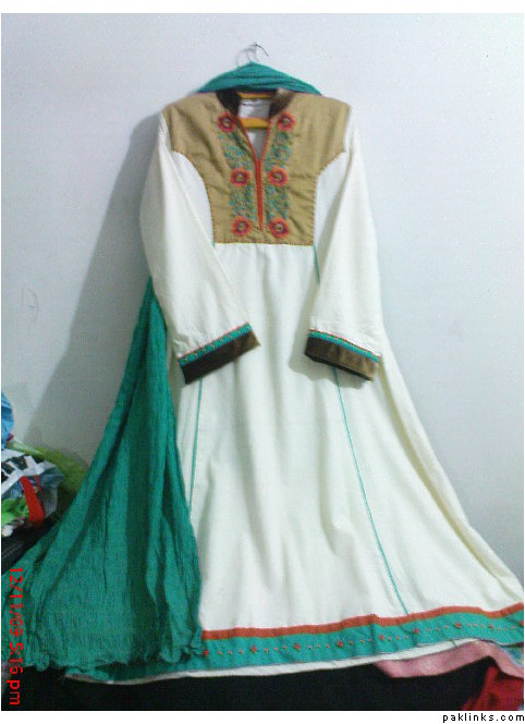 pishwas khader outfit with embrioded neck and 4 kali with white pants