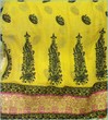 "Designer wear black chiffon two piece shirt with tie and die duppta and raw silk pants withh all banarsi patties on shirt duppta ........rs.5500"