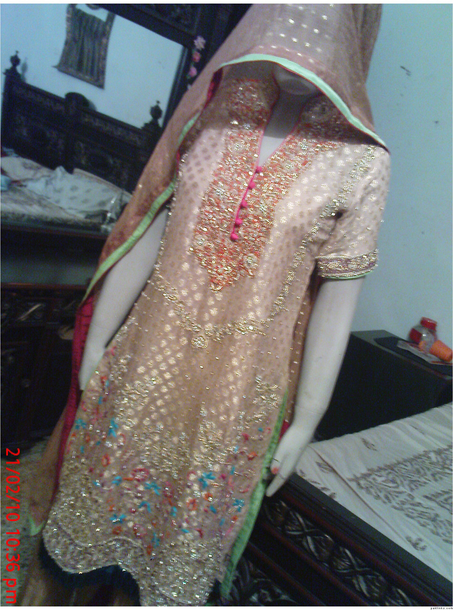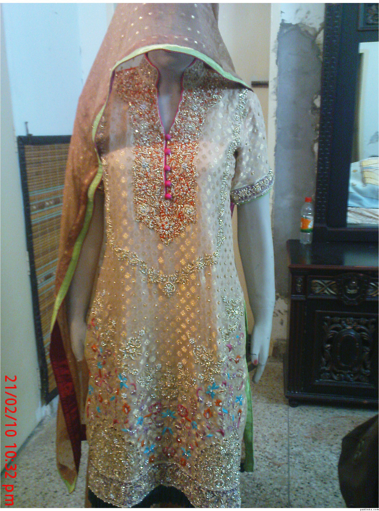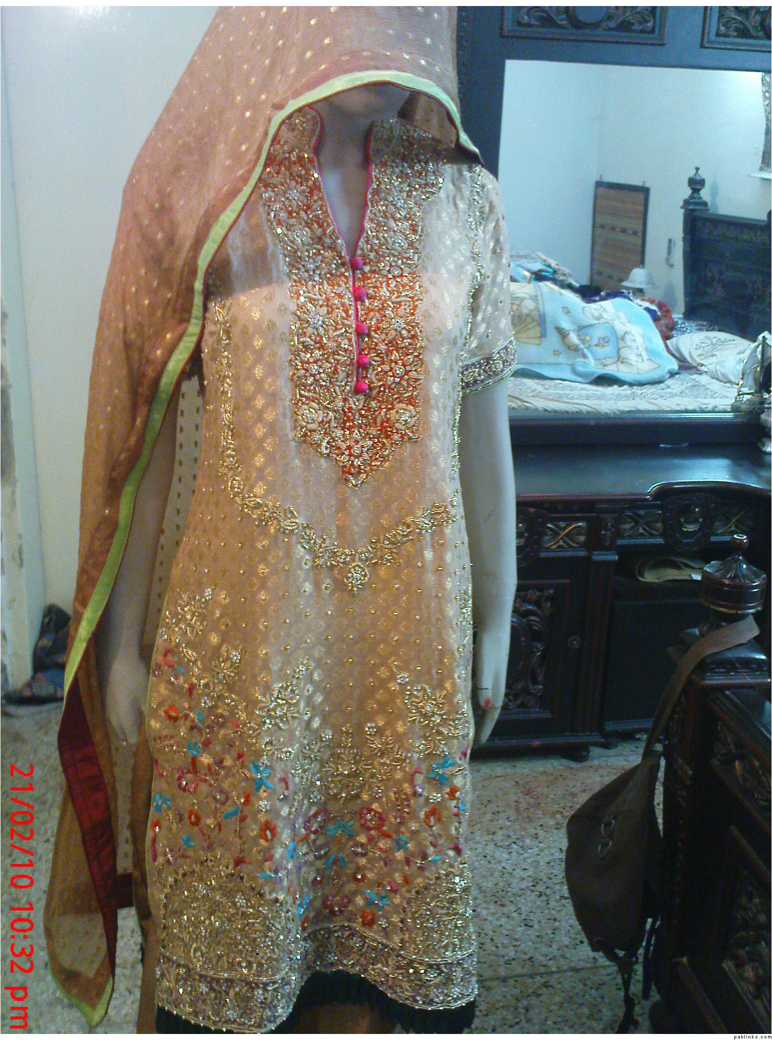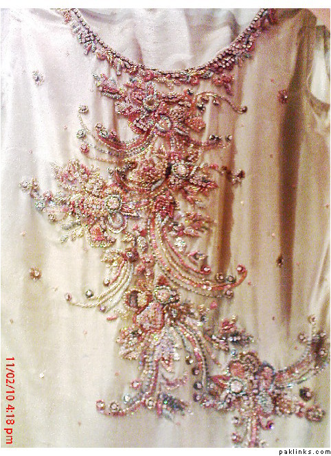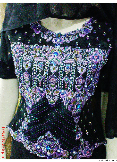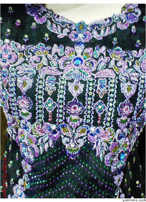 designer style neck and sleeves having a work patties,with nakshy,crsytals including hand ribbon work on chiffon…