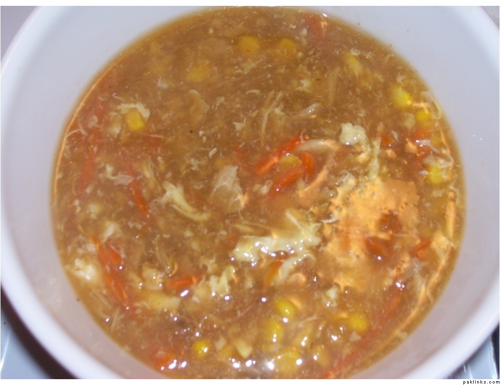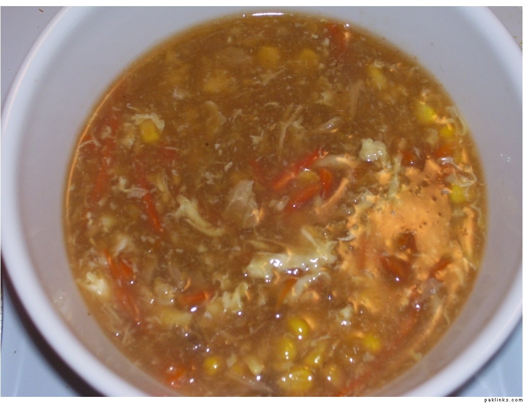 Once you have the stock, strain it, un-bone all the chicken and add it to the stock, add thinly sliced carrots, corn. When it comes to a boil add vinegar, lemon juice, soy sauce, hot sauce, and black pepper. Check for salt, if needed add more. Mix some rafan corn flour or corn starch (from american store, that is what I use) in little water, add it to the stock while stirring. Lighty whip an egg or two. Add it to the soup. After few seconds lightly stir it, cook for couple more minutes and then enjoy with crackers.
