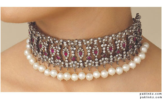 errrrrmmmmmmm how about a nice white gold set or nowadays the trend is to have a nice big artificial set matching to ur lengha i always wanted to wear white on my wedding......Good luck