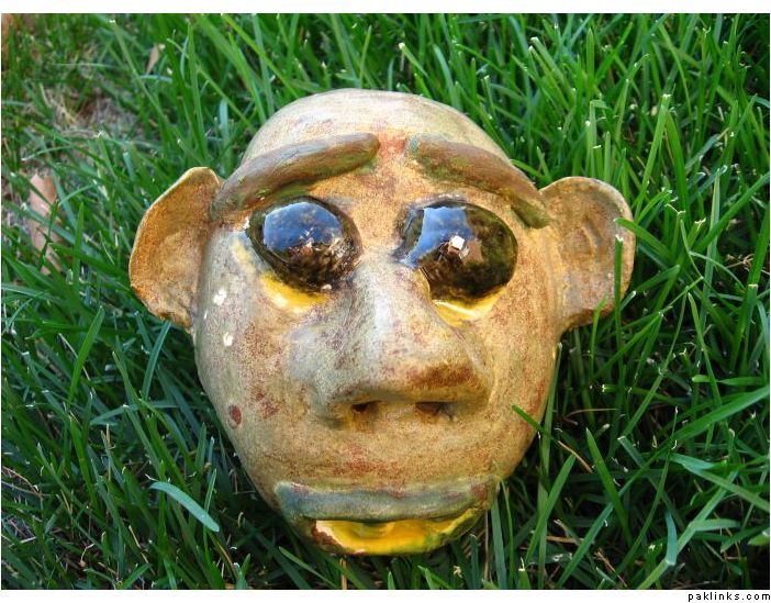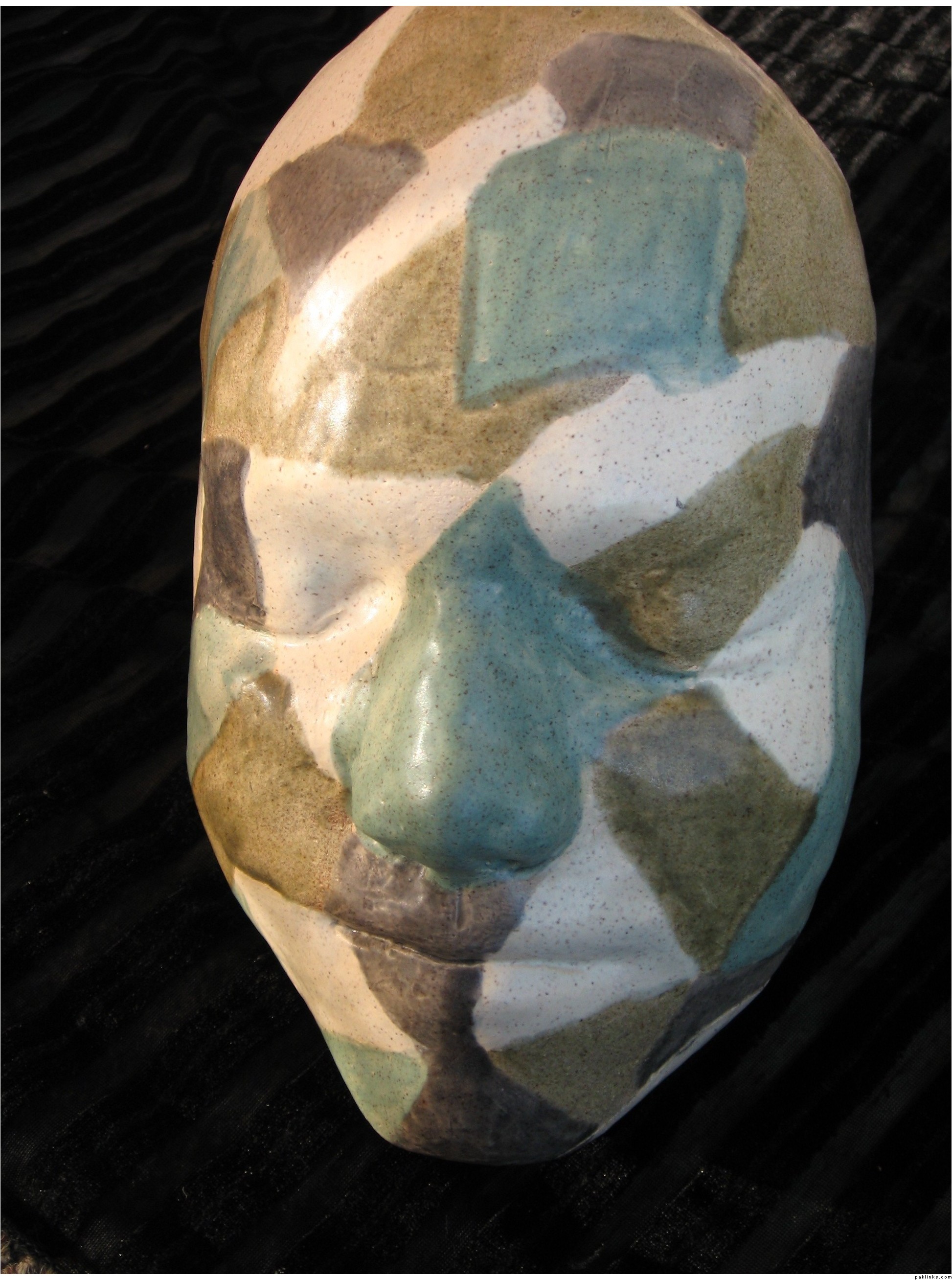 this is a face mask that i made. first i put clay in the mold, and once it came out, i fired it and painted it all whacko.