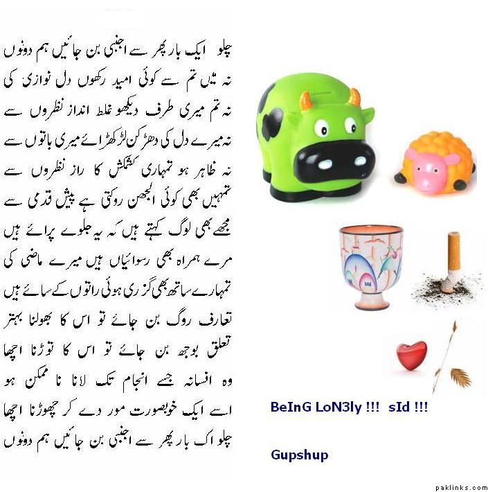 Wo Afsaanaa Jise Anjaam Tak Laanaa Na Mumkin HoUse Ik Khuubsuurat Mor De Kar Chorna Achaa**Chalo Ik Baar Phir Se Ajnabii Ban Jaaye.n Hum Dono.n **