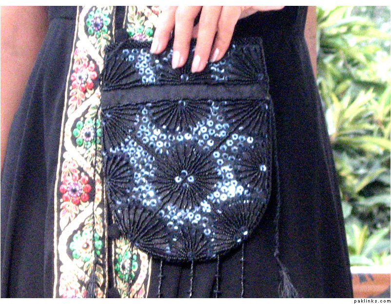 Black fancy pouch with Sittara and Motti work