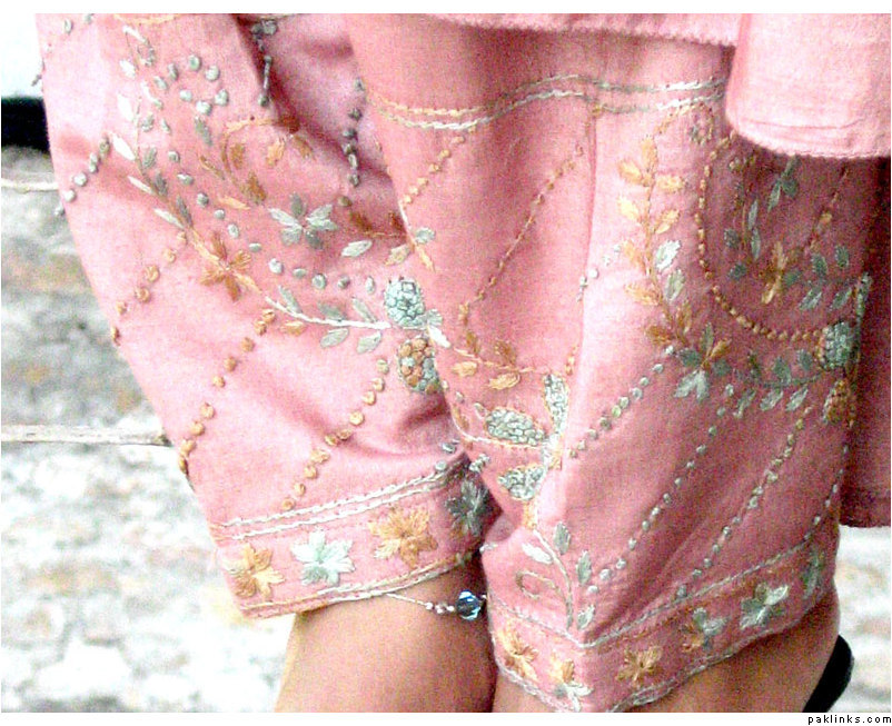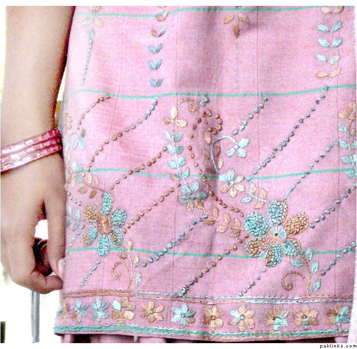 Tea pink dress with thread embroidery