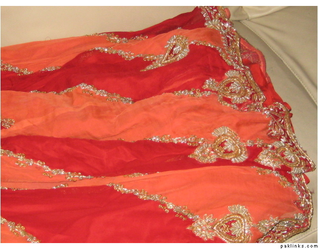 Other than that, they both look great, esp the wedding one. Pishwaz would look nice with the different colored kaliaan in it. But i have a question, wouldnt it mess up the kaam to cut the lehanga?