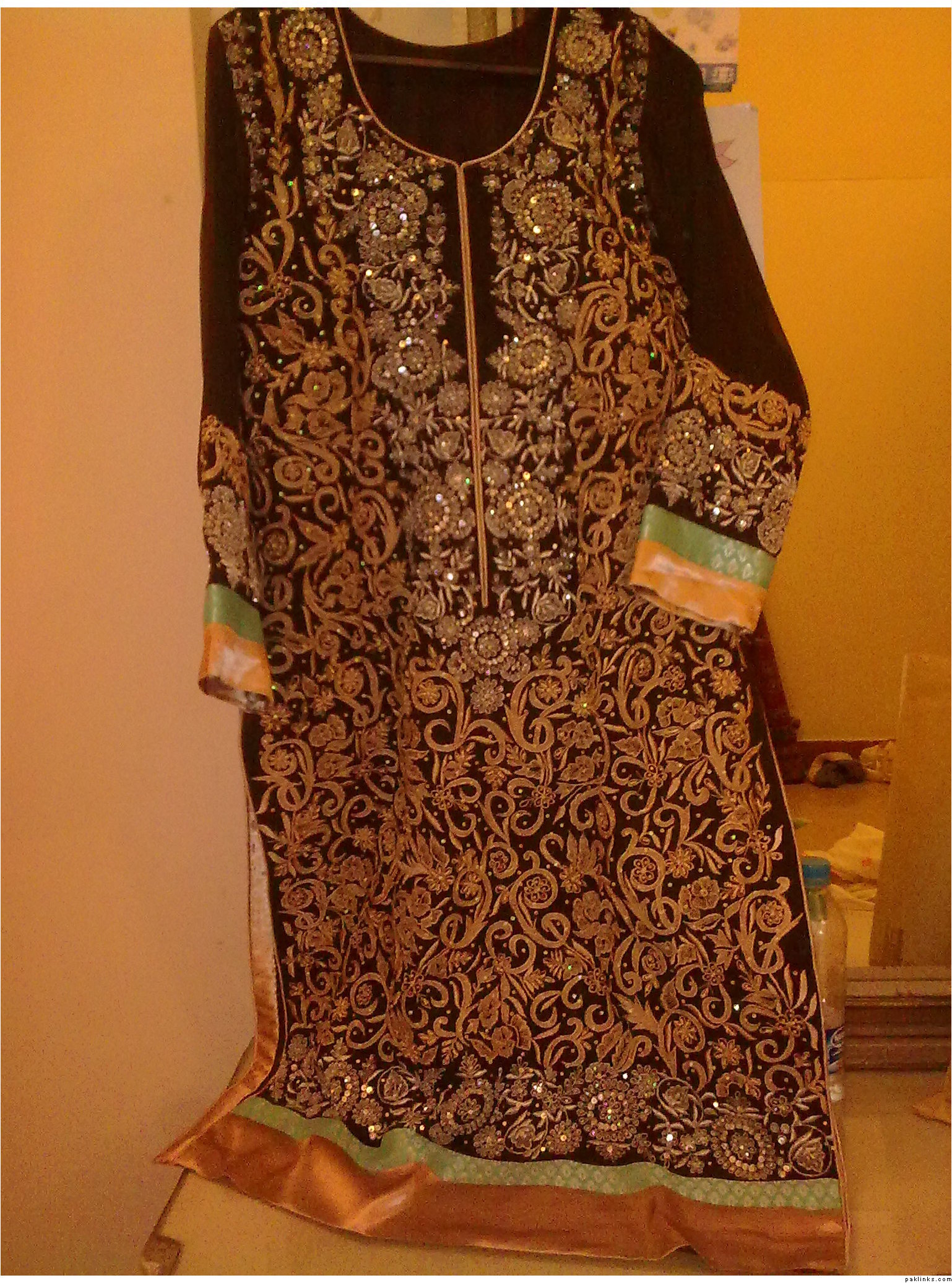 Once I get an order from a customer and after recieving half of the payment, I go ahead and buy the fabric, get it dyed, get work done on it, and then it goes off the tailor for stitching and finishing....it takes 3-4 weeks for the the outfit to get to you...
