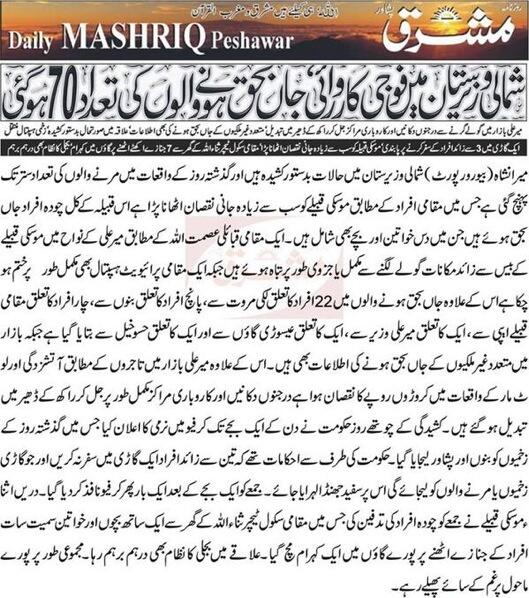 Read the tweets of Omar Qureshi or taha siddiqui, they are both pro NWA operations but they are tweeting against this attack for the past two days, good example of damned if you do damned if you dont.