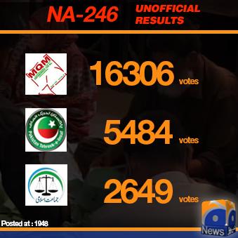 NA246 : Result from 92 polling stations: