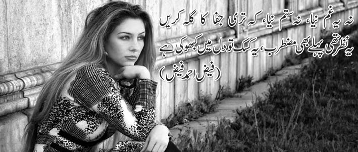 نہ یہ غم نیا، نہ ستم نیا، کہ تری جفا کا گلہ کریں یہ نظر تھی پہلے بھی مضطرب، یہ کسک تو دل میں کبھو کی ہے (فیض احمد فیض)