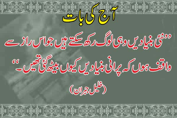 نئی بنیادیں ’’نئی بنیادیں وہی لوگ رکھ سکتے ہیں جو اس راز سے واقف ہوں کہ پرانی بنیادیں کیوں بیٹھ گئی تھیں۔‘‘