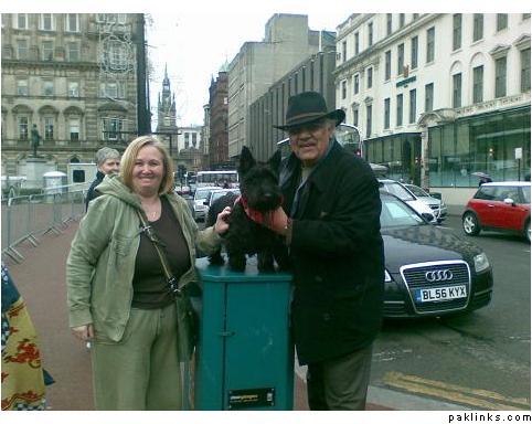 Raju, Carolyn and the Scottish Terrier…at St.George’ Square.
