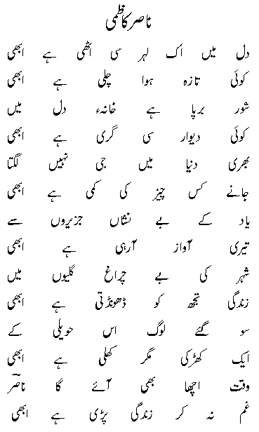 soch pe pehre to khuda ne bhi nahin bithae.. khair which is your most favourite ghazal / kalaam of Nasir Kazmi?