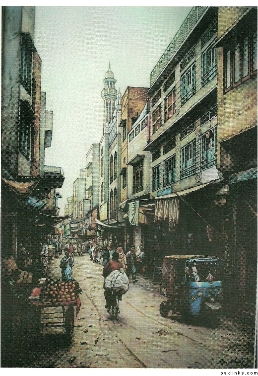 When it comes to water colors in landscape and street scene no artist comes close to him in defining the nitty gritty of details that he strives to give an effect of a picture of a picture rather than a hand painting. His pre-colonial buildings paintings of Lahore and Karachi unveils the beauty, purity and intrinsic dichotomies omnipresent in our environment. He paints rural area with just as ease showing horses and mules grazing in the fields side by side slung to their respective band wagons.