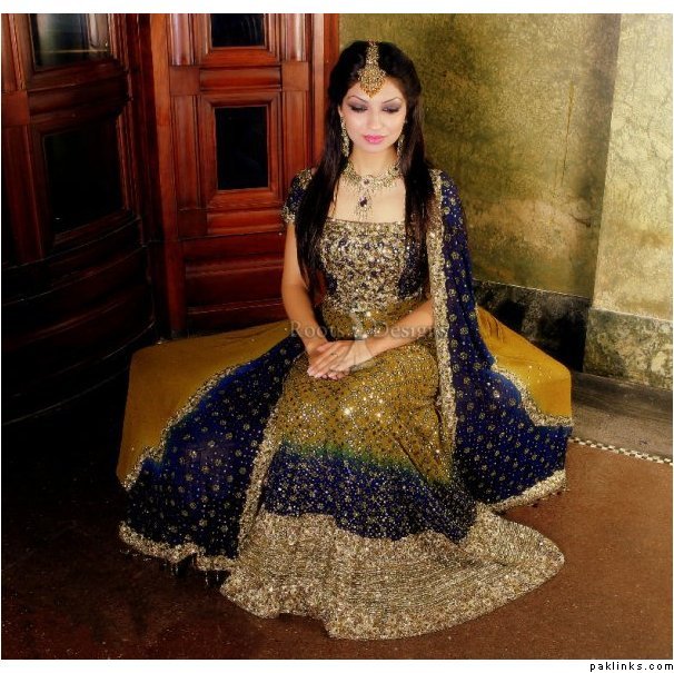 i cant send u the pics but my valima dress was a velvet deep blue gown with a trail and it had peacock motifs on it it had a light weight sea green veil on top so the overall theme was peakok and it looked gorgeous