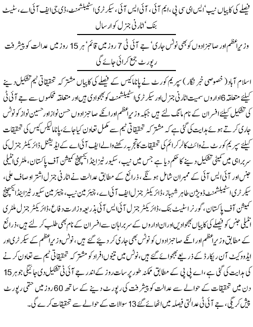 “These petitions had been entertained by this Court in the backdrop of an unfortunate refusal/failure on the part of all the relevant institutions in the country like the National Accountability Bureau, the Federal Investigation Agency, the State Bank of Pakistan, the Federal Board of Revenue, the Securities and Exchange Commission of Pakistan and the Speaker of the National Assembly to inquire into or investigate the matter or to refer the matter to the Election Commission of Pakistan against respondent No. 1 [Nawaz Sharif].”