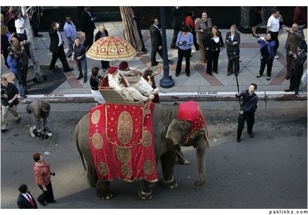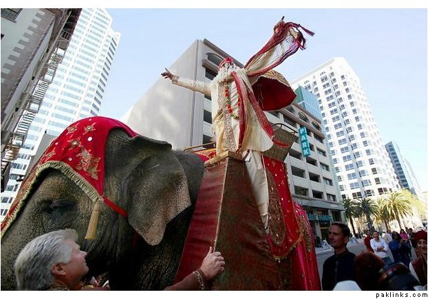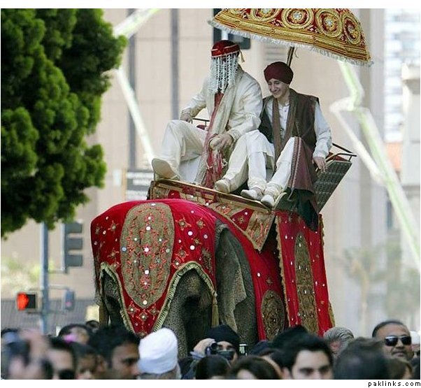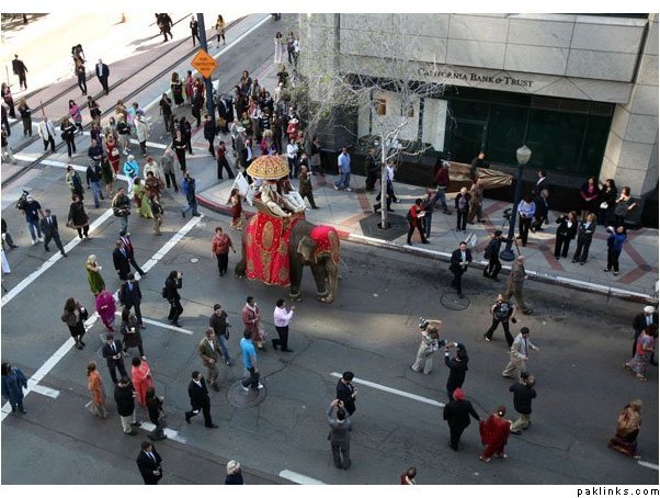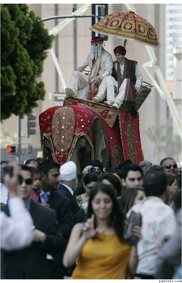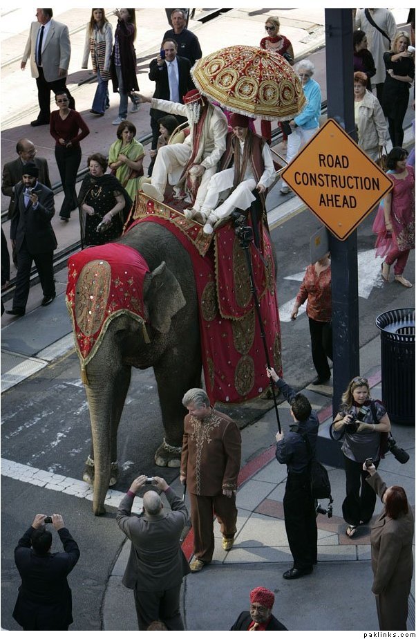 Yes! The elephant ride was a surprise gift from the groom’s mother. It was quite the spectacle as an elephant adorned in bright colors and sequins plodded along downtown streets Friday.