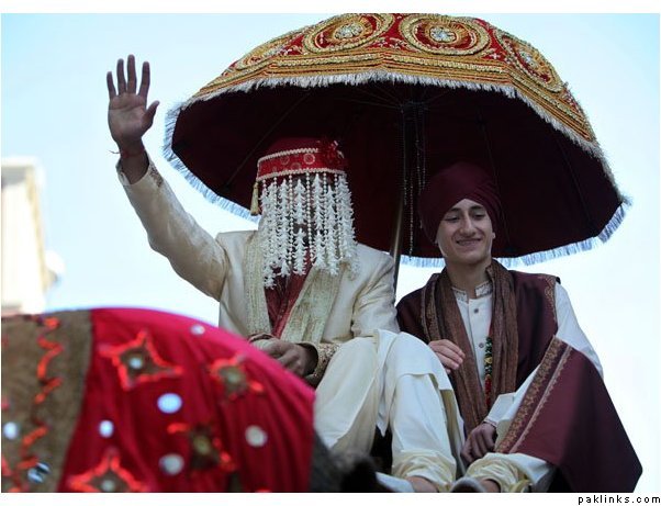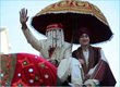 Friends, family and media cheered on the groom, as he got atop the elephant.