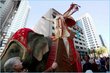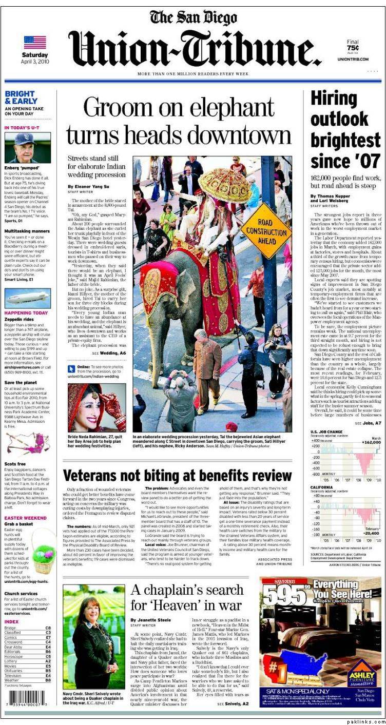 On the day of the elephant parade, the videographers pretty much choreographed exactly where their cameras would be and when would reposition. The videographer happened to be grabbing a shot while hoisting his monopod to Sati’s level when a photographer snapped this picture of him. It just so happened that this picture made it onto the front page of the San Diego Tribune.