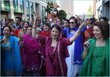 As the wedding procession made its way through downtown San Diego, family and friends danced to music and drums. In the center of the crowd is the groom’s mother, Ranni Hillyer who had a surprise gift for her son!