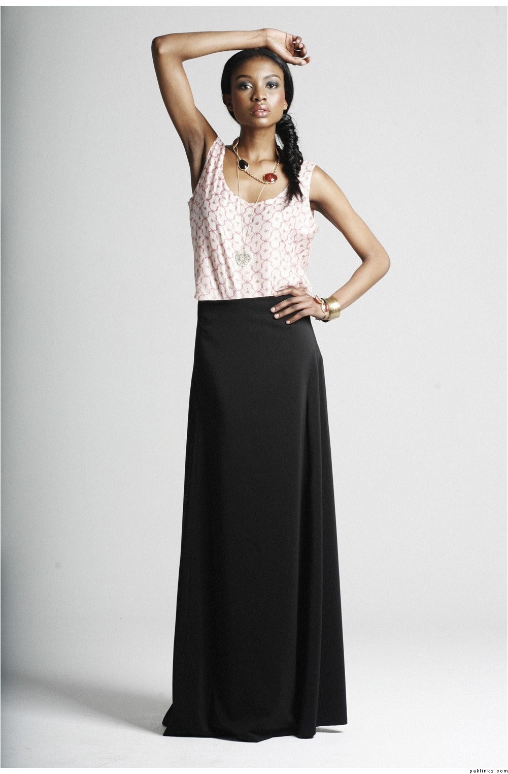 Maxi skirt with simple tops..