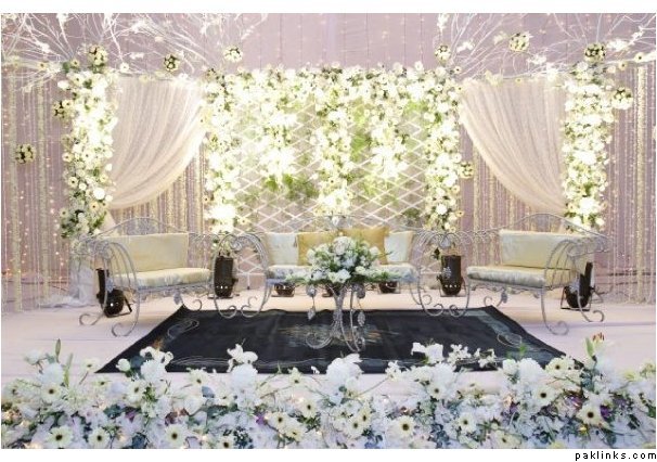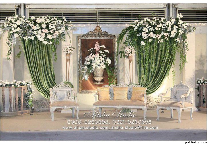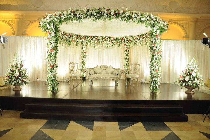 Secondly, keep it simple designed. So that they can recreate it. Topi rakh itself has high roof, gives it a regal effect. Don’t try to fill it with decor. The pictures posted wont give an idea of the colors you are using, but rather the structure and ideas for stage design. Naturally for colors of flowers you are to go with cream/white gladiolas along with some ferozi ones. Bus. Also white lilies here and there. Please stay away from roses.