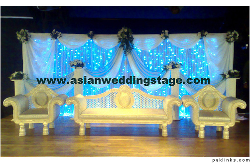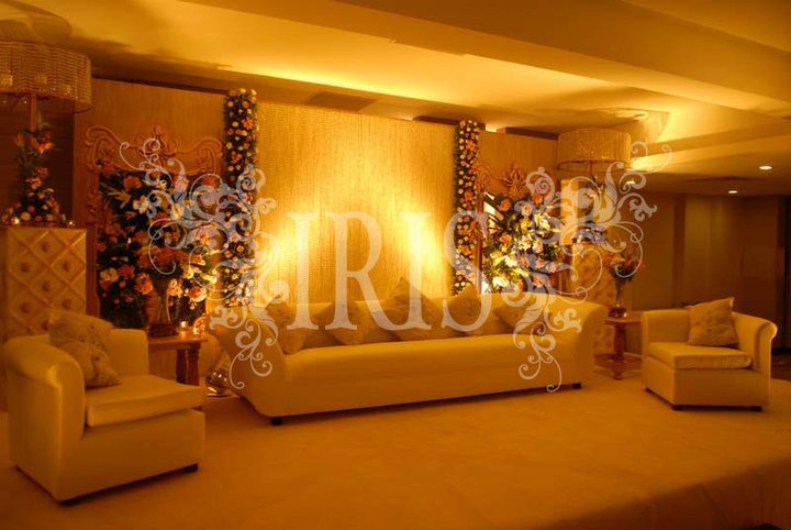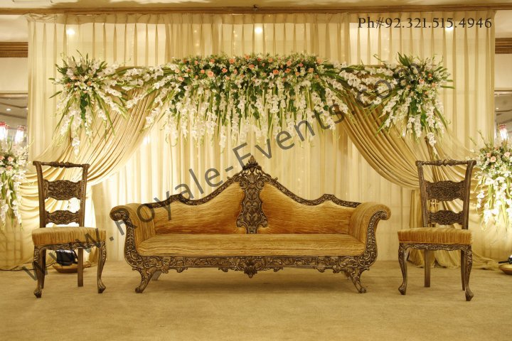 I would like to add cream. Not just gold and ferozi. Add cream accents to the hall. You have the stage? Hall, depends, are you in pakland or abroad? What is available to you