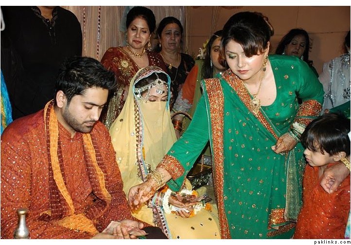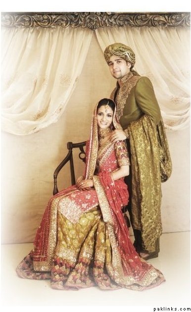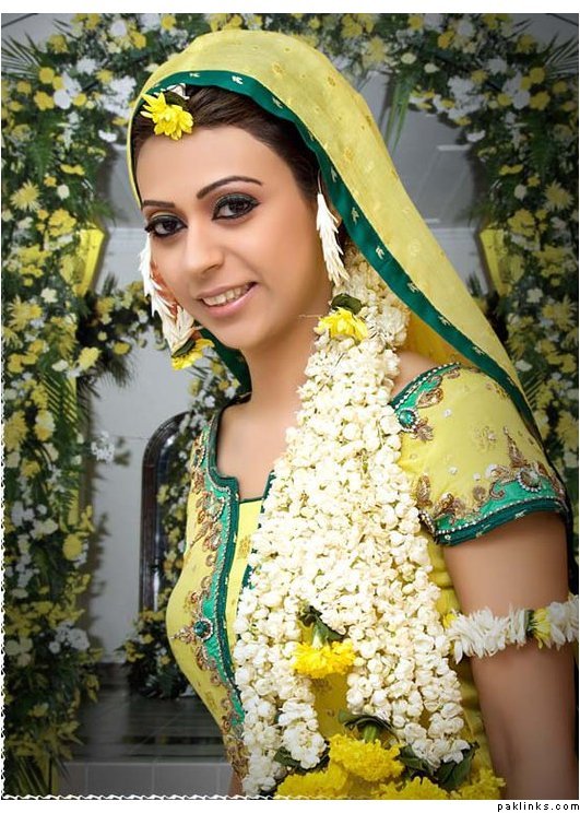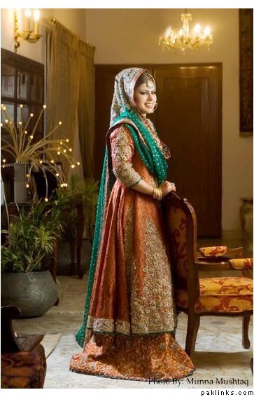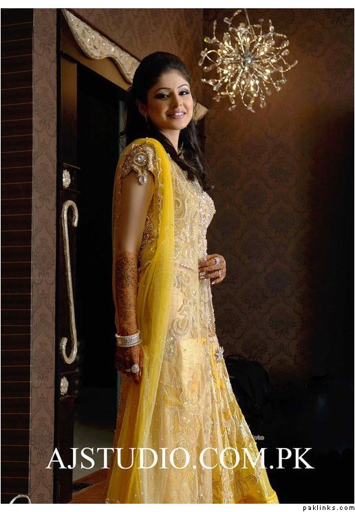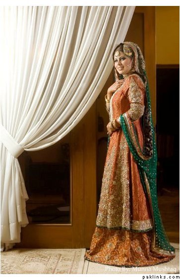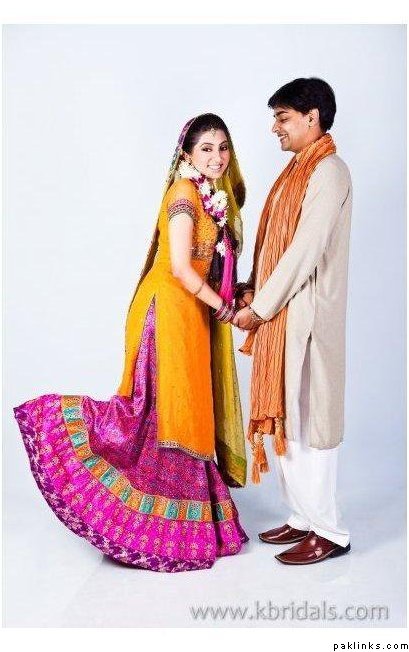 I wore a white sari on my nikkah as I have always wanted to wear white and thought it would be a bit dull on the wedding. I am thinking of wearing a ghagara on the mehndi, something a little short in length (btw does anyone have any pics of something like as, since this is an idea in my head) I want the outfit to be a mix between green and yellow, but my dupatta will be shocking pink. My wedding outfit will be a lenga with a long kamiz (gold and peach) as I'm not keen on the traditional red wedding outfit and my valima in shades of purple, a long kamiz with churidaar.