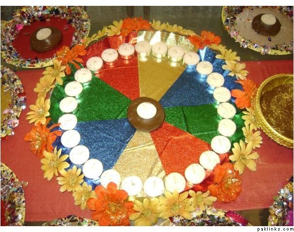 i think the new concepts of thalis are making iron stands and on wood planks... at my outlet, i have provided these thals to some clients which were on huge wooden planks covered with fresh flowers and having diyas and mehendi in the center....