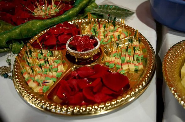 hey nida cool yaar ... where can i get this golden thaali .. and what is that red red .. rose petals ?