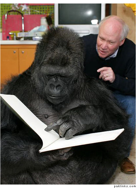 “A study of gorillas has discovered that gorillas apparently know sign language from birth. The study found that the same signs were turning up in different gorilla populations.”