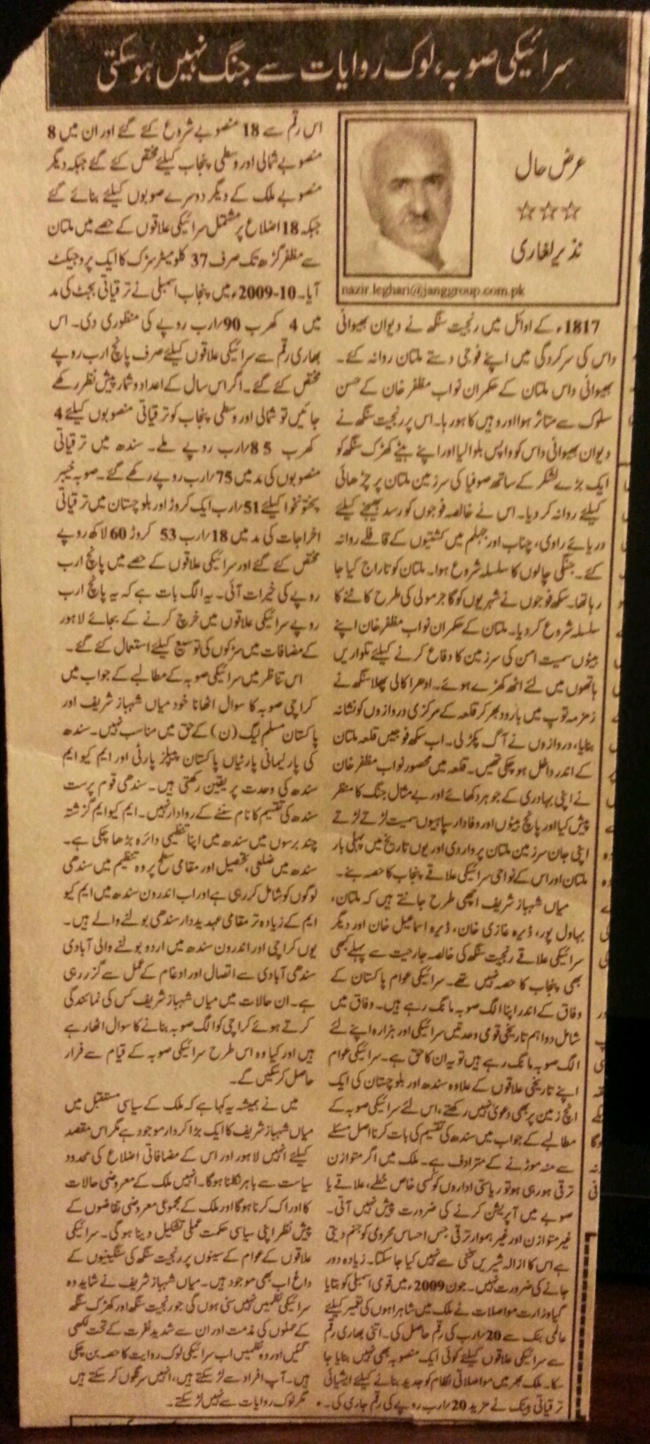 Creation of provinces should be done properly otherwise it will aggravate the matters. It creates a lot of emotions, you would have observed that as soon as Pti talked of Hazara province ANP raised its Pashtunistan rhetoric as well. As far as seriaki province is concerned, referendums need to be done in concerned districts as the populations are very finely balanced in many areas. The financial and resource distribution is another important point which needs to be sorted out.