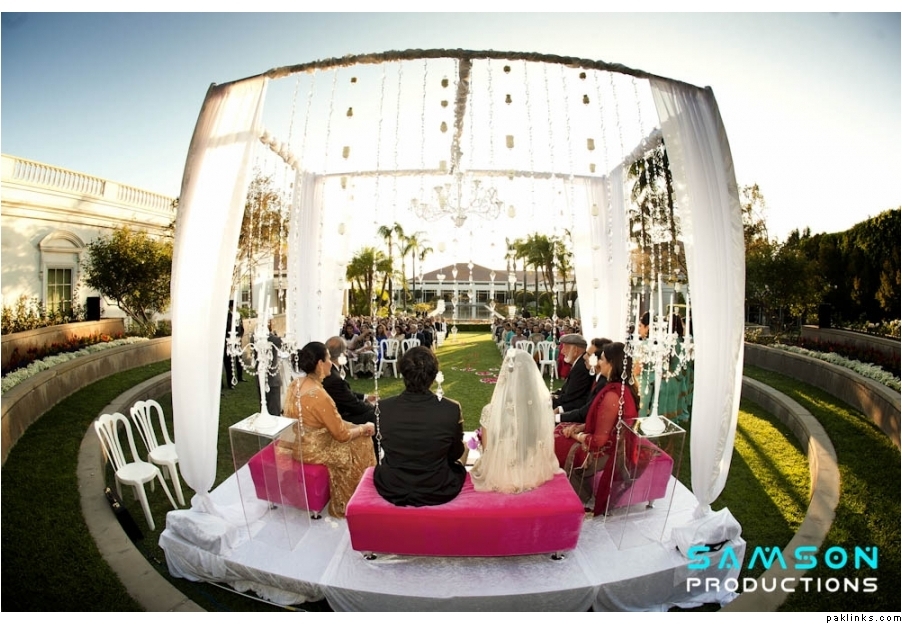 I went to a wedding of a paksitani girl and a chinese guy. they had their wedding at a golf club and the nikkah ceremony was in the gazebo..it was so pretty!