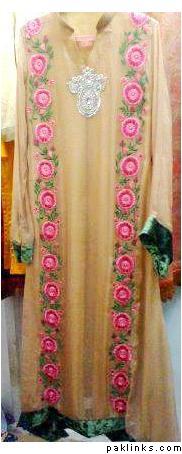 types of embroidery really depends on what kind of dresses you like - the most common being dabka, kora, naqshi, stones and sequences - these do not go well on pure chiffon but they do go well on kadarh chiffon and majority of other materials
