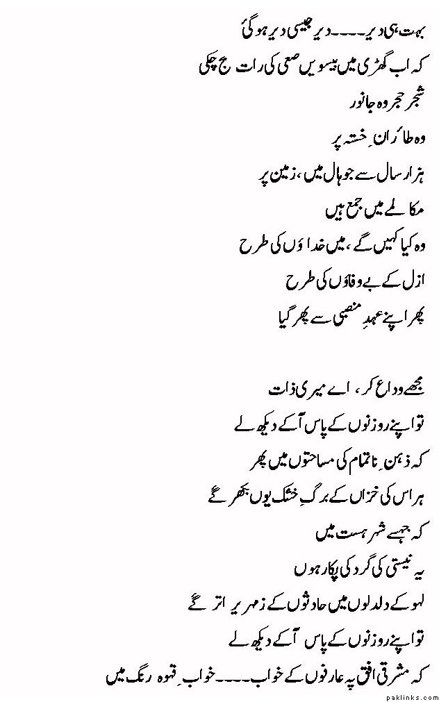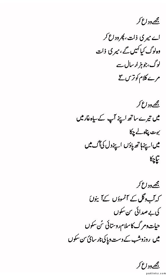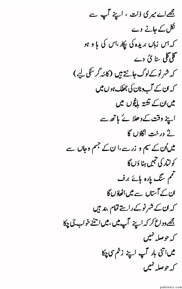 **ai meri zaat, phir mujhe vida kar **