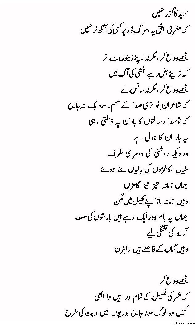 **ke magHrabi ufaq pe, marg noor pe kissi ki aankh tar nahi **